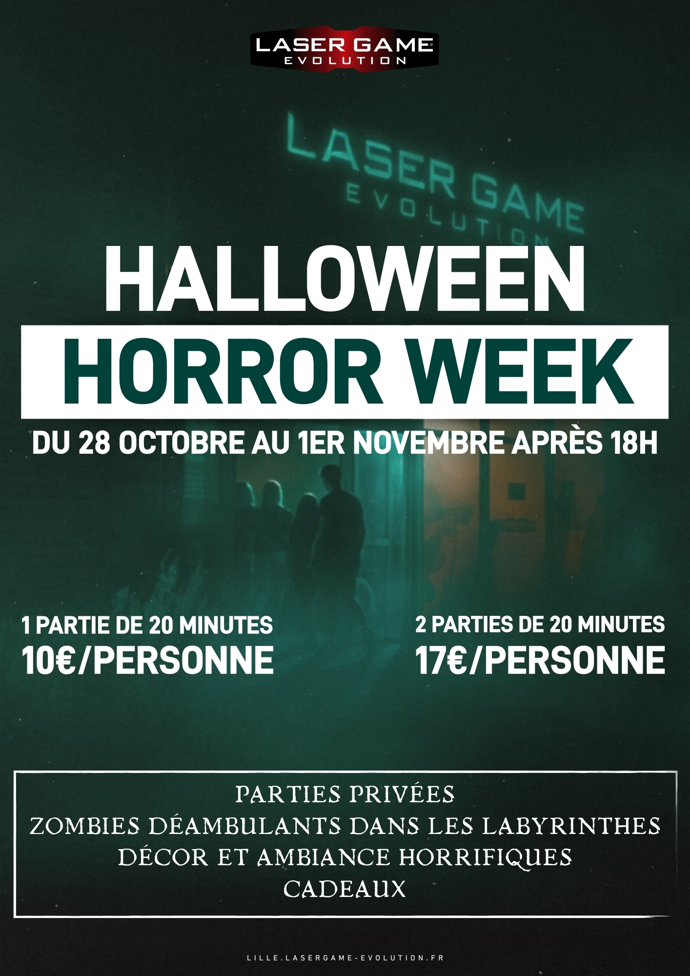 Quand la nuit tombera, à partir de 18h, les plus téméraires affronteront l’invasion de zombies envahissant les labyrinthes du laser game. Cependant, cette atmosphère est conseillée aux ados de plus de 16 ans ! Qu’attendez-vous pour réserver votre place sur le site https://lille.lasergame-evolution.fr/, au 03 20 13 70 63 ou directement sur place ?
